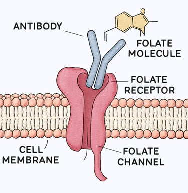 Folate receptor alpha antibodies are antibodies which attach and special receptor on brain cells. These receptor open channels to allow folate into brain cells and when these receptors are blocked or impair by antibodies then folate cannot get into the cell.